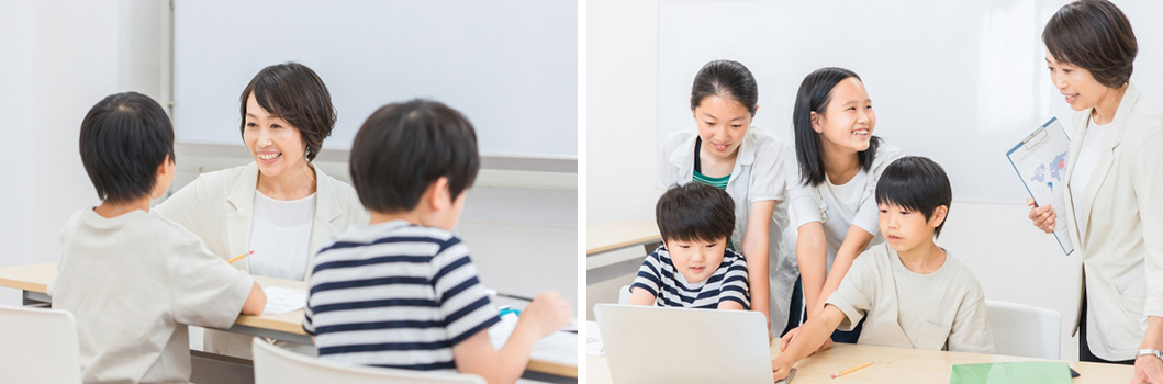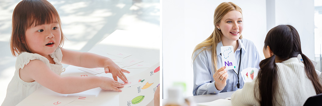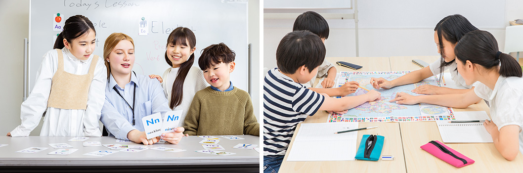 ネイティブの先生と楽しく英語を学びます。グループクラスは、日本人スタッフのサポートがあるので、小さいお子様にも安心!